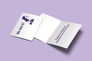 Add your colleagues’ first name to the front cover of the card of your choice. Type a personal note of appreciation in the fillable text box. Or, use a blank card and handwrite a personal note.